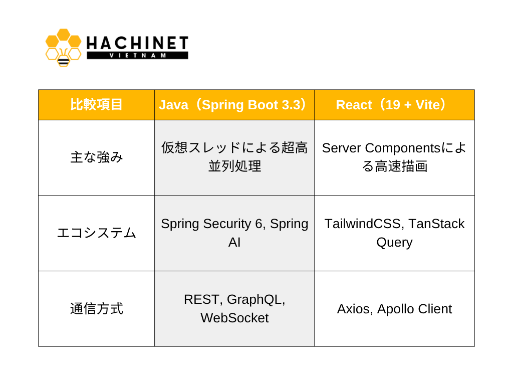 つまり、Javaが「守り」を担い、Reactが「攻め」を担う構図が、このスタックの本質です。
