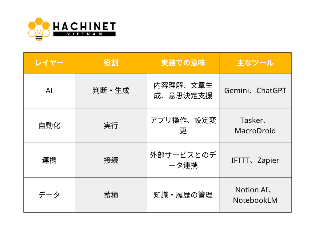 3. Androidで使えるAI・自動化ツールの全体構造