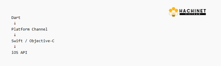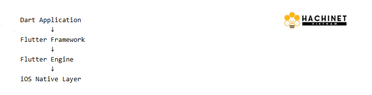 Dart → Flutter Framework → iOS API
