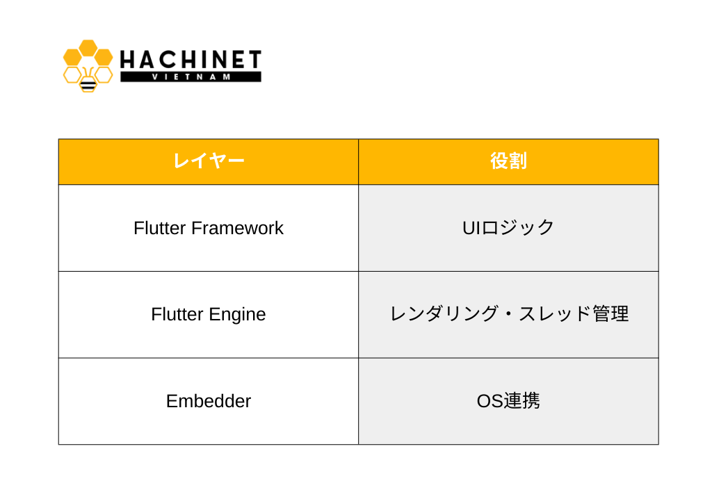 一方、Flutterアプリでは次のようなレイヤーが追加される。