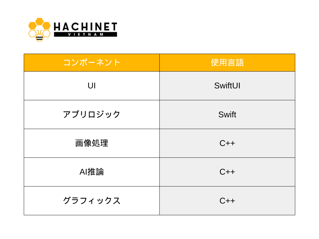 そのため、AI推論エンジンや画像処理ライブラリの内部実装はC++で書かれていることが多くなっています。