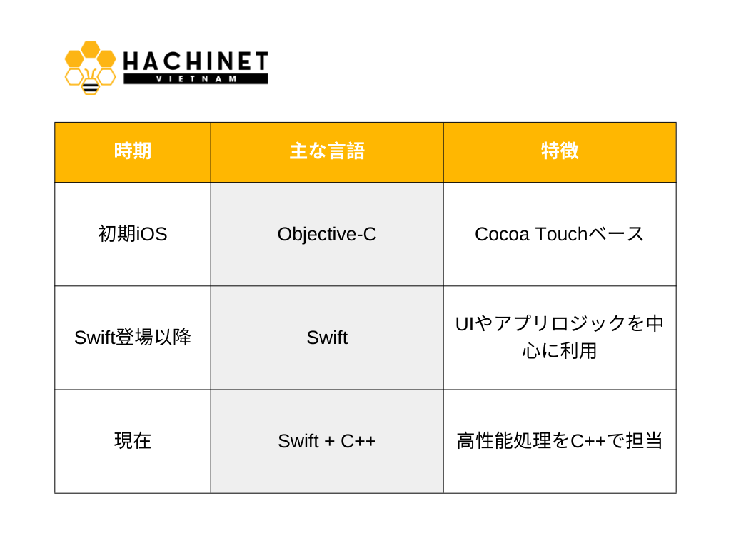 まず、iOS開発で使われてきた言語の変化を簡単に整理します。