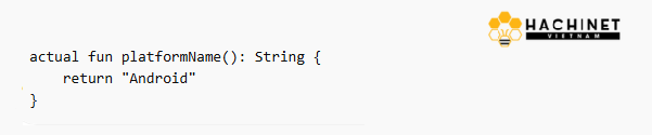 Kotlin Multiplatformでは、プラットフォーム依存の処理を分離するために expect/actualを使用する。