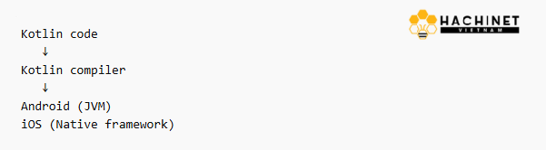 Kotlin Multiplatformでは、共通コードはプラットフォームごとにネイティブコードへコンパイルされる。