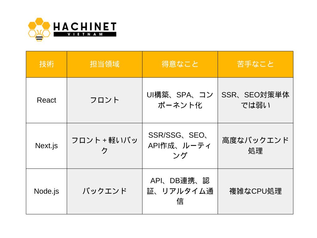 7. 技術スタック比較:React × Next.js × Node.jsを理解する