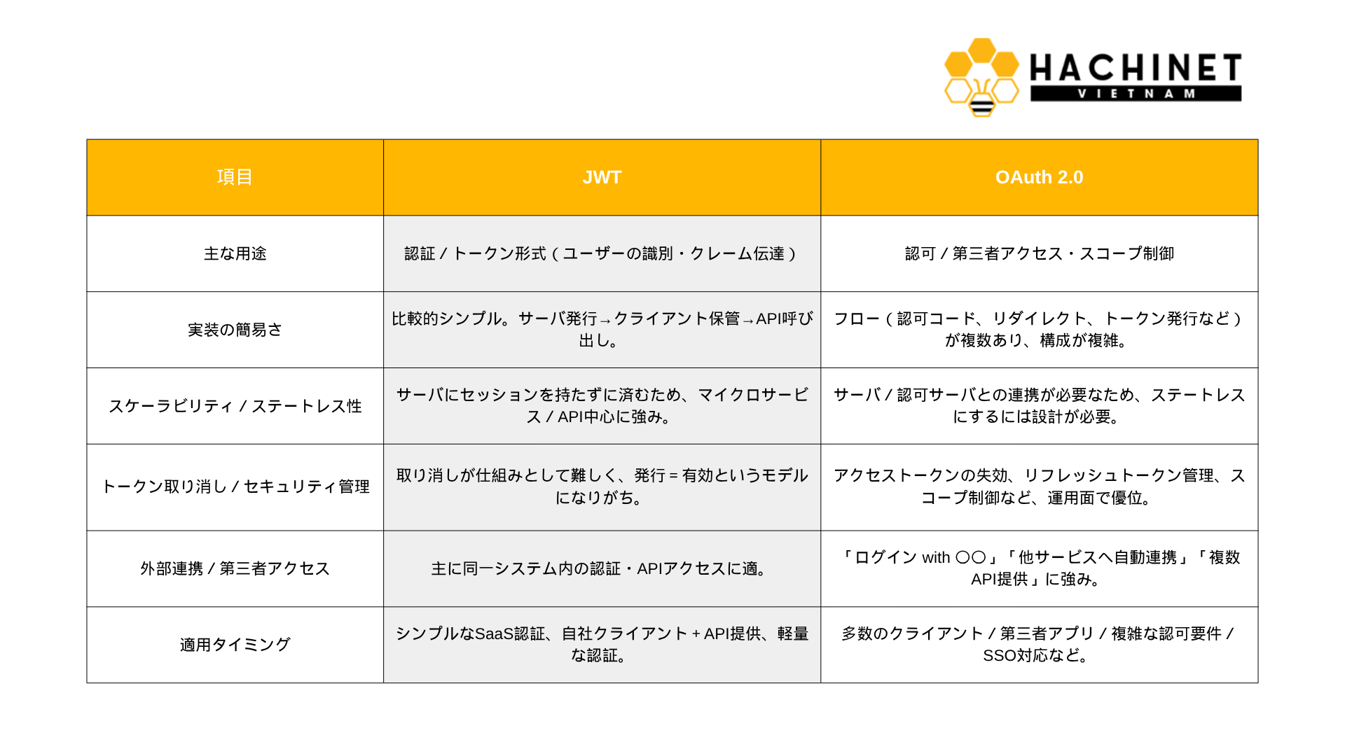 4. JWT と OAuth 2.0 の比較/使い分けポイント