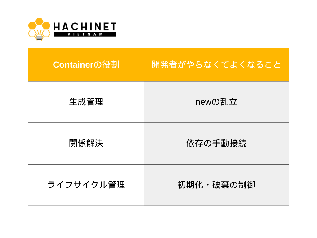 Containerは、アプリ全体の構造を理解した上で、設計通りに組み立てる管理者です。