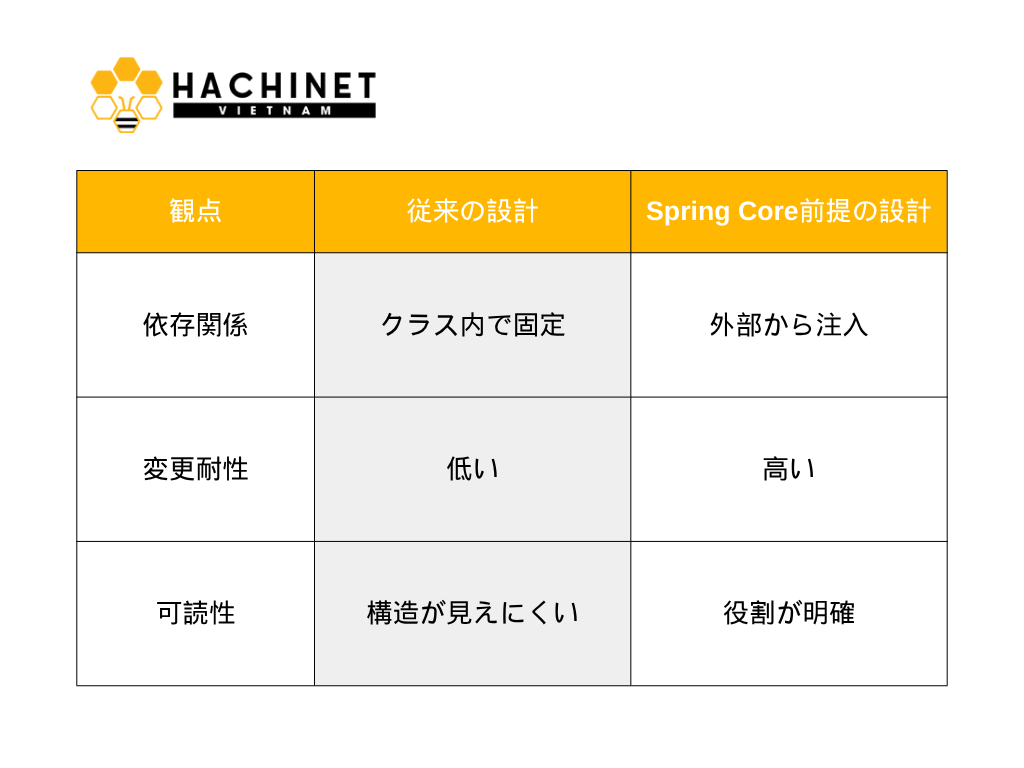Spring Coreは、疎結合設計を「努力目標」ではなく「前提条件」に引き上げる役割を担っています。