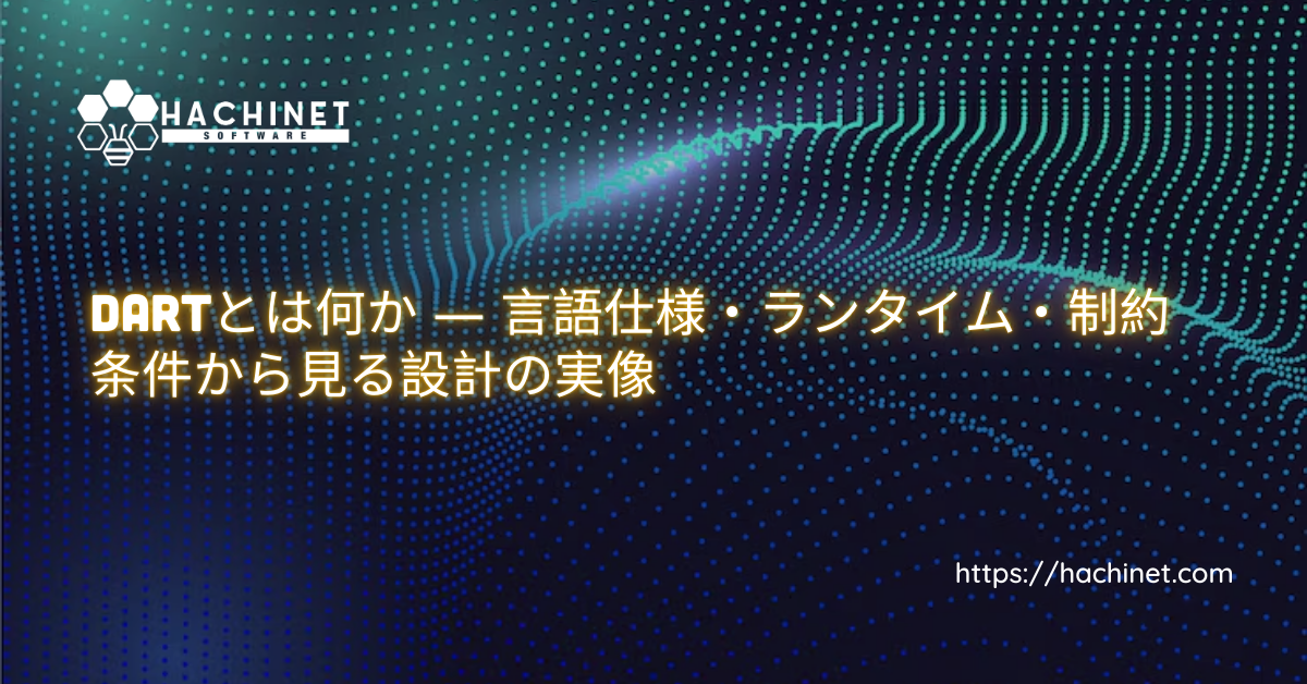 Dart 入門や Dartとは というキーワードで語られる内容の多くは、表層的な機能説明に留まっています。しかしDartは、流行に合わせて作られた軽量言語ではなく、明確な制約条件を起点に設計された結果として現在の形に落ち着いた言語です。本記事では、Dartを仕様・ランタイム・設計判断の連鎖として捉え、その必然性を整理します。