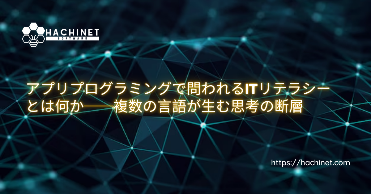 ITリテラシーがあるかどうかは、プログラミング言語を知っているかでは決まりません。本質は、なぜアプリプログラミングが複数の言語に分かれているのかを、構造として理解しているかです。この記事では、言語ごとに異なる役割と思考モデルを明確にし、非エンジニアが判断を誤る理由を技術構造から説明します。