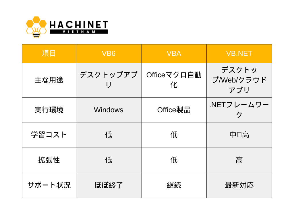 5. VB6、VBA、VB.NETの違いをまとめて比較