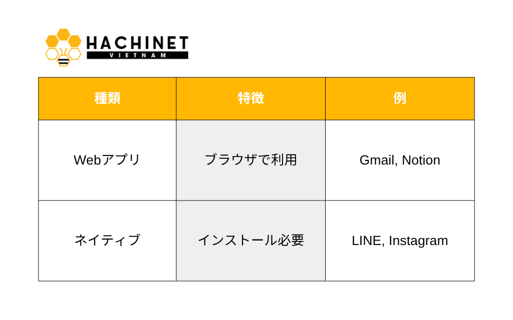 Webアプリは導入の手軽さ、ネイティブは性能やOS連携に強みがあります。